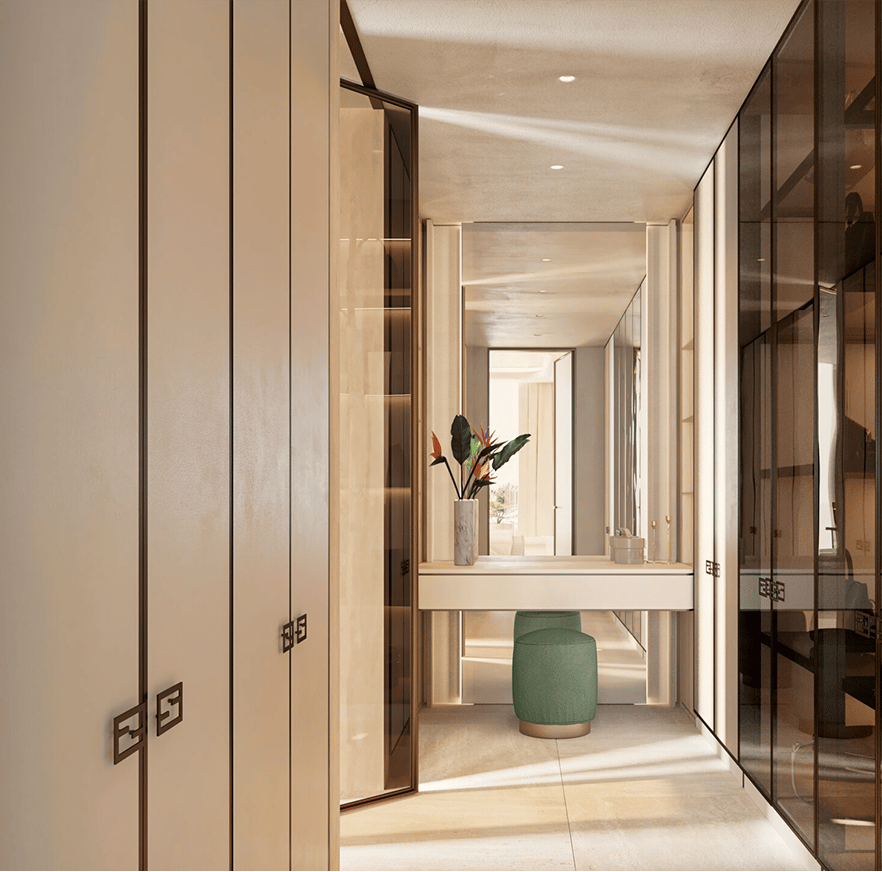 - Spacious primary suites with custom FENDI Casa walk-in closets
