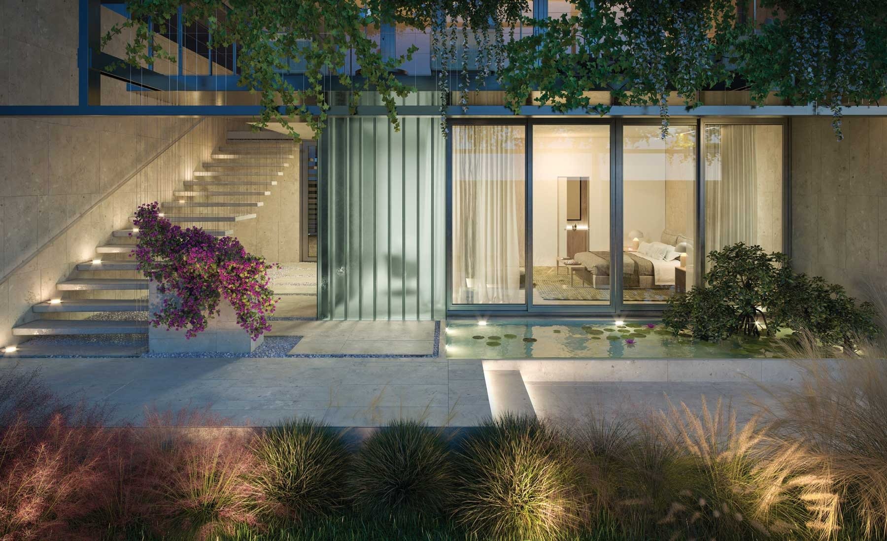 Located at the enviable corner of Collins and 88th Street, SURF ROW is perfectly positioned for an ultra-luxury life of leisure and convenience. Each uniquely designed private Beach Home by award-winning Rene Gonzalez’s connects the outside and inside realms through light: majestic skylights, layered varieties of glass in the facade, and a true sense of depth. With a focus on the intersection of architecture, physics, and design, Gonzalez showcases the intricate, yet playful ways rays of light react to angular architecture as well as the kaleidoscopic hues it reveals over time.