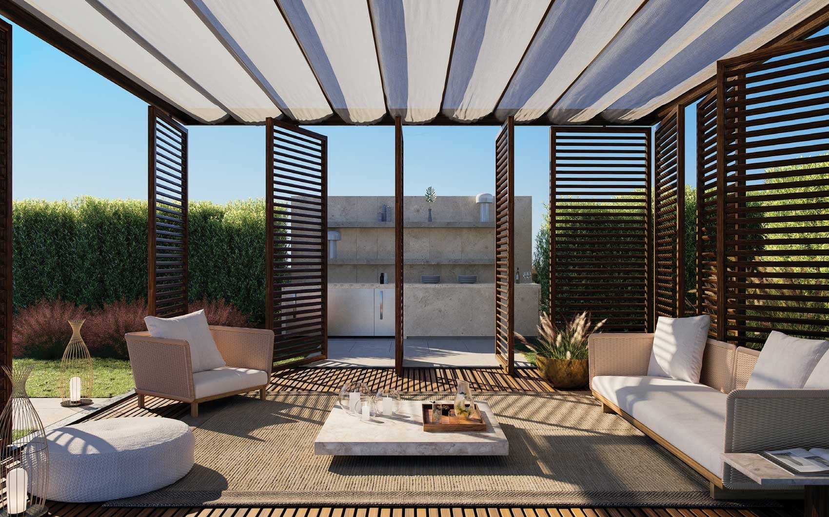 - Rooftop with summer kitchen, outdoor shower, and plunge pool