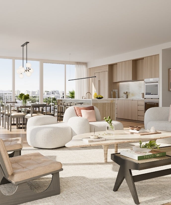 Ancient philosophies meet modern design: THE WELL Bay Harbor Islands features spaces which are gracious yet use ancient techniques to move energy and light while still featuring modern fixtures. The textures and palettes are timeless, softly curved interiors to create fluid energy. Each residence is thoughtfully curated and designed to sustain every aspect of your holistic health, while recognizing that true wellness means something different to everyone.